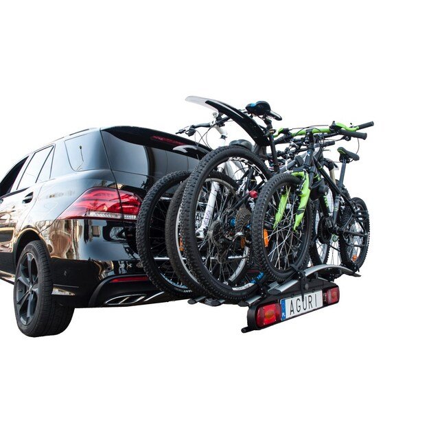 Aguri dviračių laikiklis ant kablio Active Bike 3 su praplėtimu ketvirtam dviračiui. Šis laikiklis jau pritaikytas keturių dviračių gabenimui. Matmenys ir svoris: 108x73x74 cm 19,4 kg.
